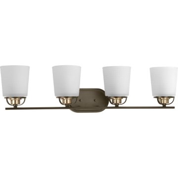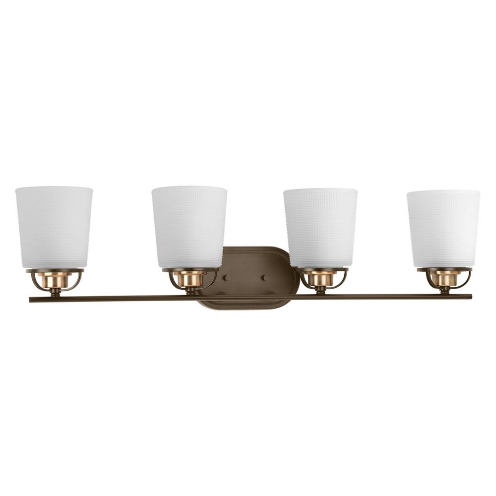 Progress Lighting West Village Collection 4-Light Etched Double Prismatic Glass Farmhouse Bath Vanity Light Antique Bronze