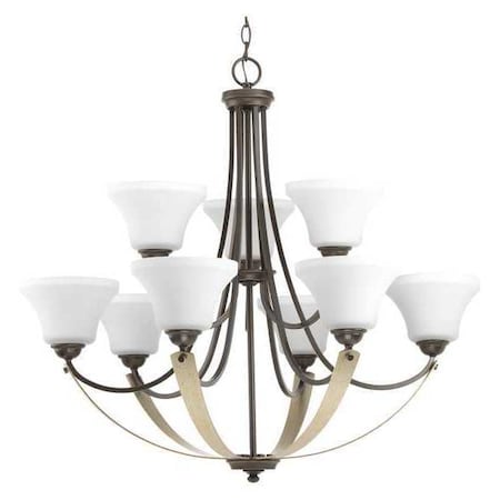 Noma Collection 9-Light Etched White Glass Luxe Chandelier Light Antique Bronze