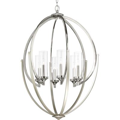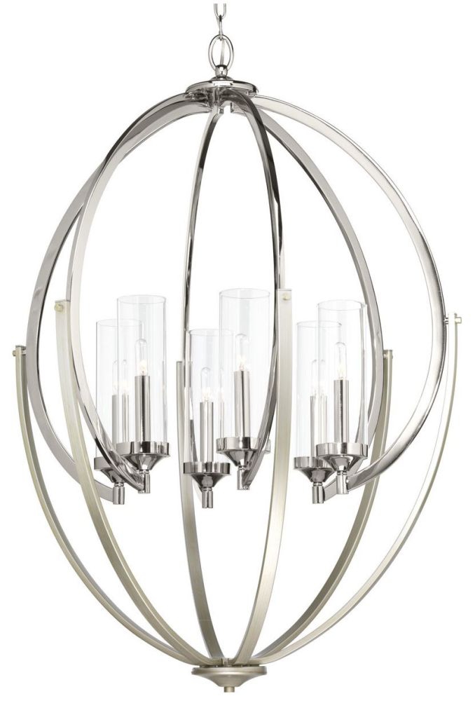 Progress Lighting Evoke Collection 6-Light Clear Glass Luxe Chandelier Light Polished Nickel