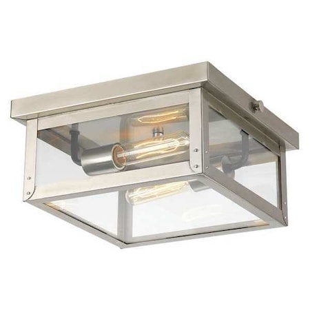 60W 2-Light Medium E-26 Incandescent Ceiling Light with Clear Flat Glass in Stainless Steel