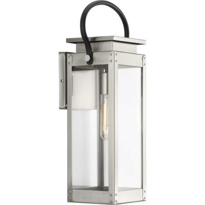 Progress Lighting Union Square Collection 1-Light Clear Flat Glass Farmhouse Outdoor Medium Wall Lantern Light Stainless Steel