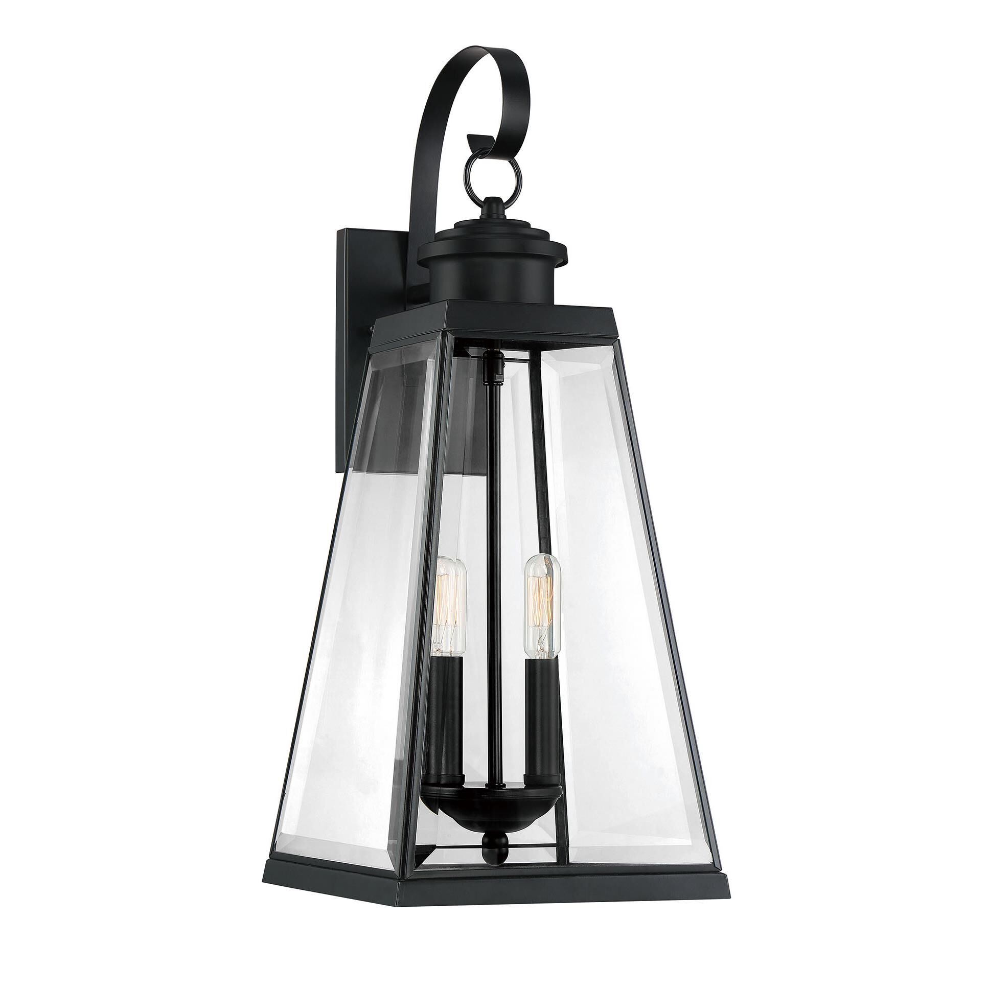 Quoizel Blueprint Collection PAX8409MBK Paxton Clear Beveled Glass Outdoor Wall Sconce, 2-Light 120 Total Watts, 22" H x 9" W, Matte Black