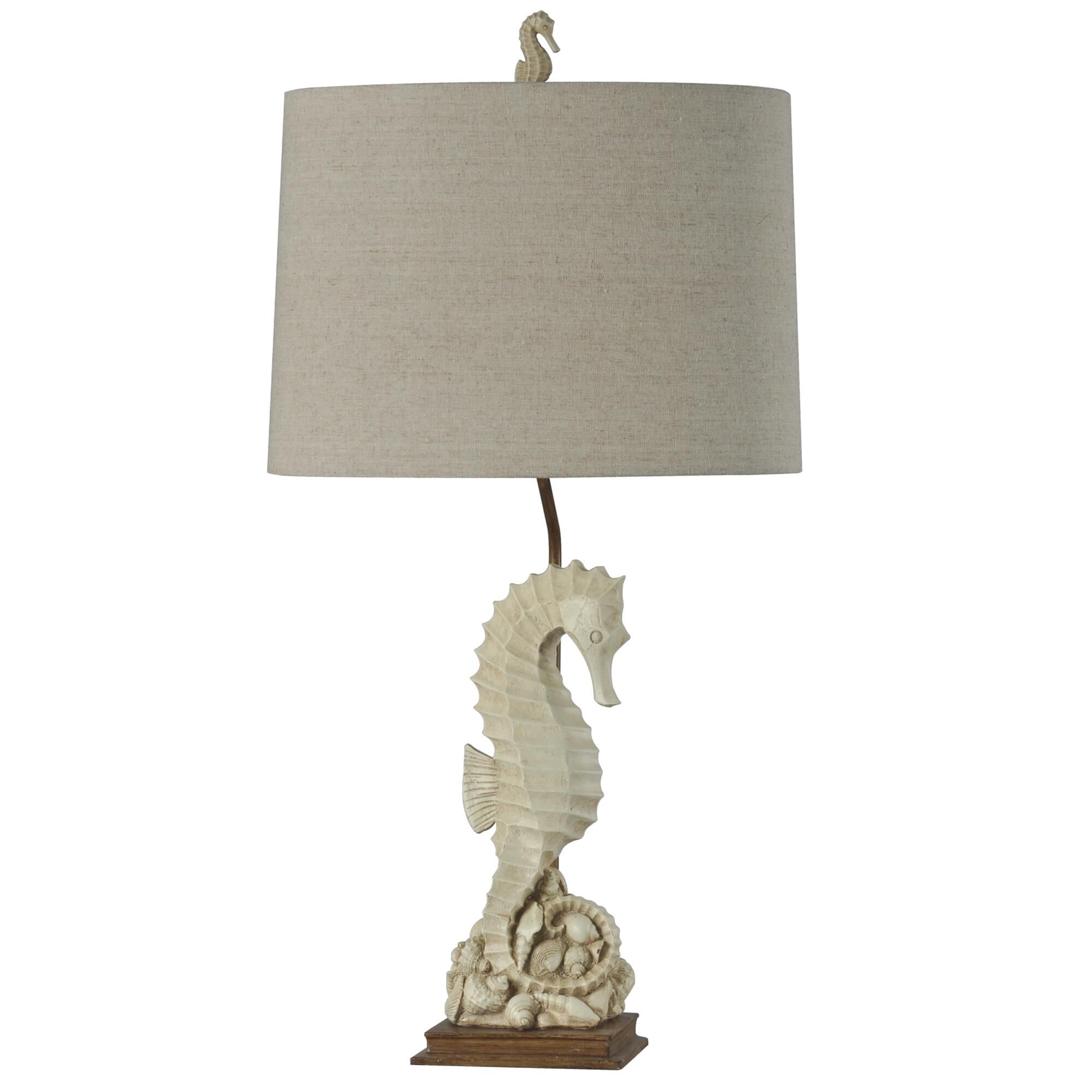 - Seahorse Table Lamp - Beige with Ivory Finish - Oatmeal Fabric ShadeFeatures