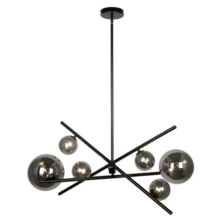 6 Light Halogen Horizontal Pendant, Matte Black with Smoked Glass