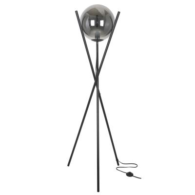 1 Light Incandescent Floor Lamp Matte Black Finish with Smoked Glass