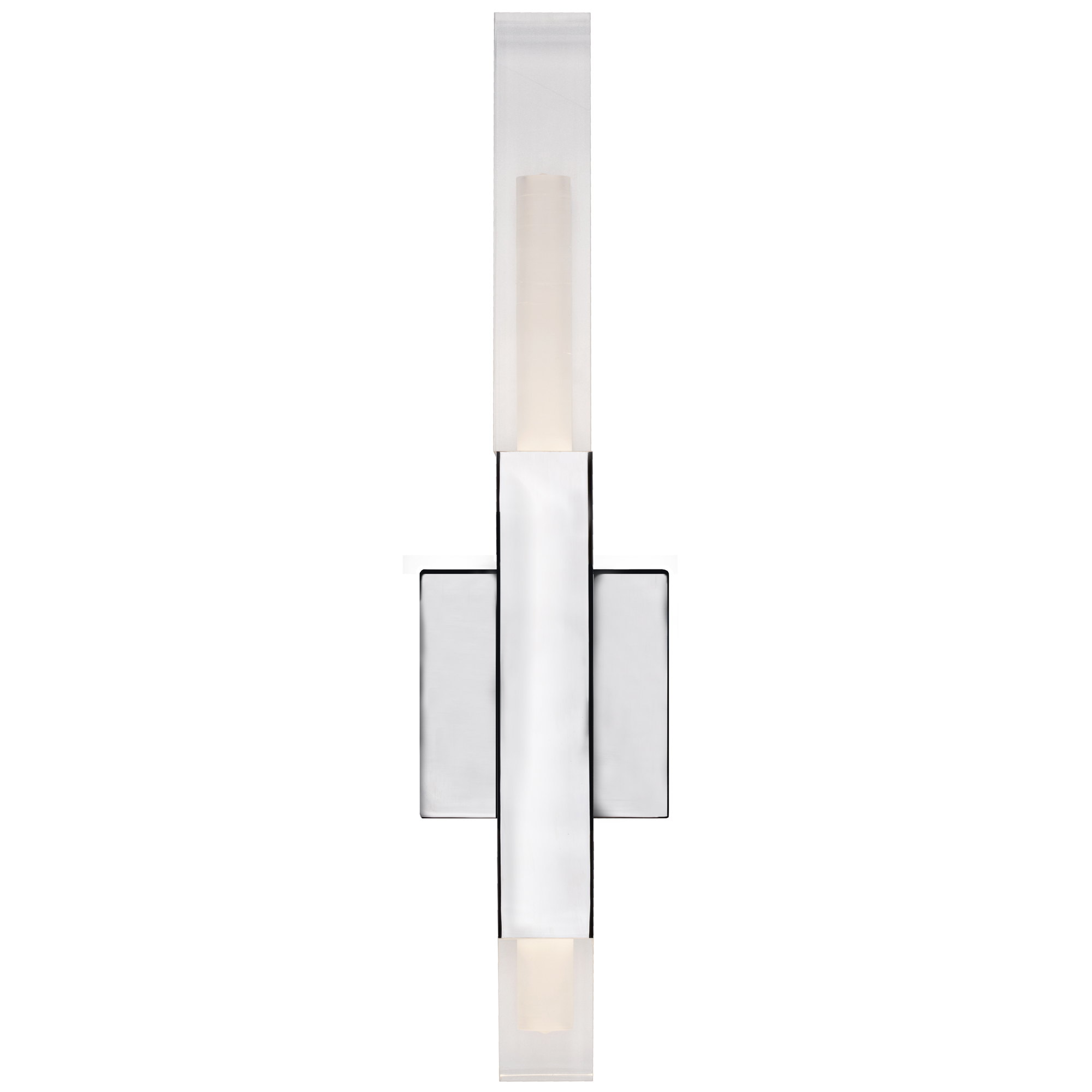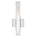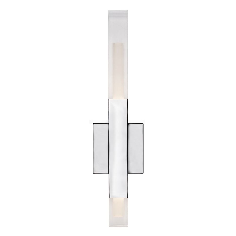 Collection: Martelo, Finish Color: Chrome, Width: 1.63", Height: 17.5", Depth: 2.38", Backplate Width: 4.13", Backplate Length: 4.13", Lamping Type: LED, Wattage: 12 Watts, Cri: 90, Color Temperature: 3000 Kelvin, Lumens: 800, Dimmable: Yes, Moisture Rating: Dry Rated, Desc: Martello uses man-made and natural elements to exude a dramatic vibe; A polished chrome bar capped with quartz-like acrylic ends, sit parallel affixed to a chrome square. The chrome square is the mounting point for this wall sconce. Clean angles and edges are highlighted by the light emitted from each end of the silver bars.,