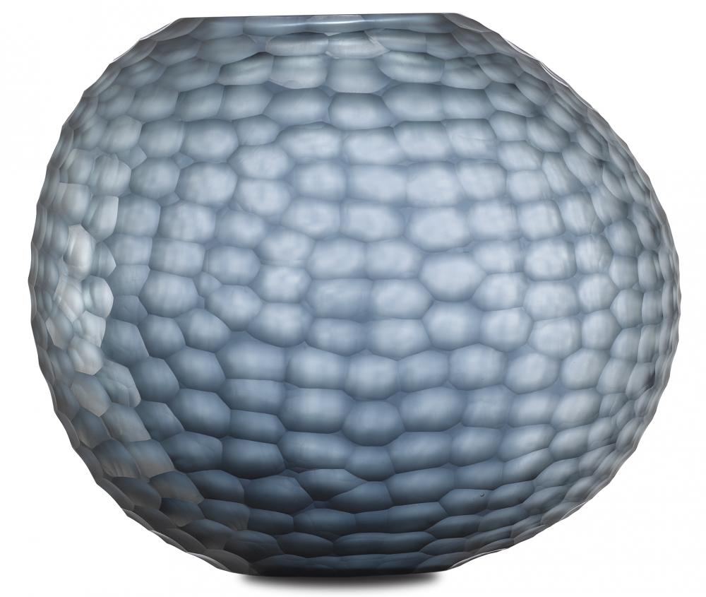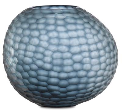 The Ionian Lare Vase made of ocean blue lass that has oranically interestin patterns pressed into its surface will make a luminous accent for any room. Tuck it into a shelf or place it atop a stack of books, or pair it with the Ionian Small Vase to cr
