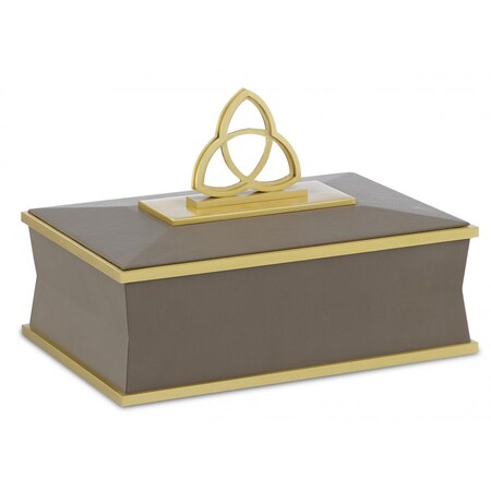 Trinity 14" Wide Taupe and Brushed Brass Decorative Box