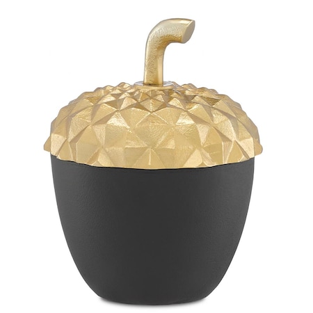 The DNA of an entire oak tree is in the acorn that sprouts it. Likewise, the essence of all its whimsical charm is contained within our Oaknut Small Jar made of cast aluminum in shiny old and matte black finishes. The leamin textural top serves as a pe