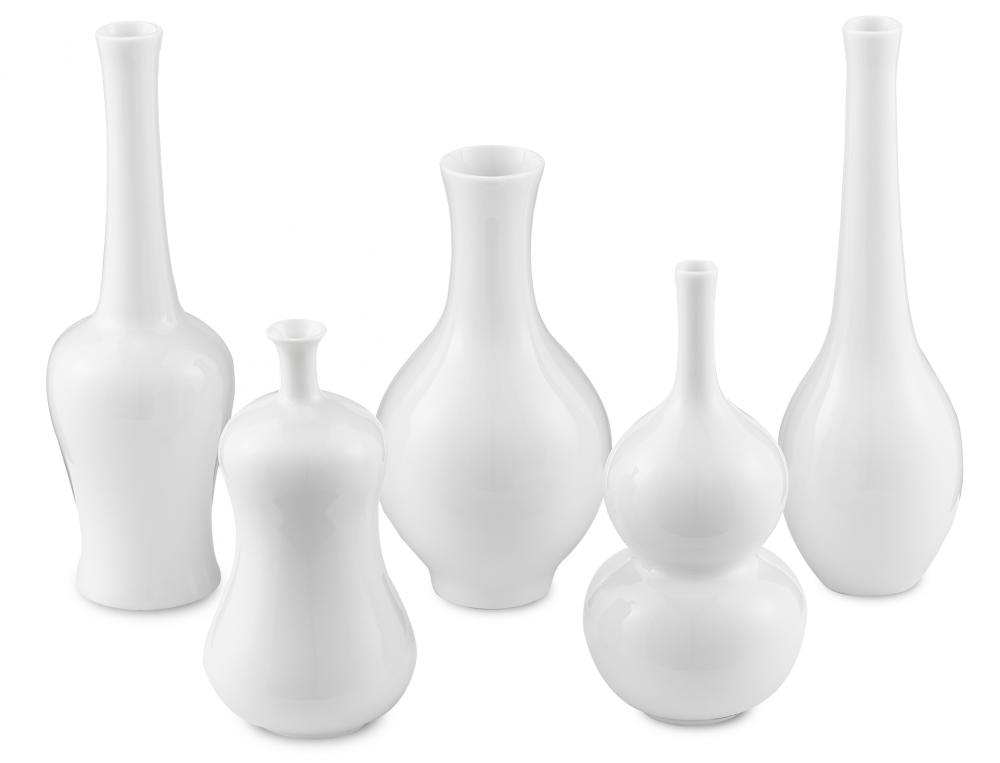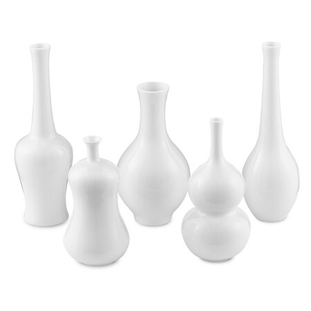 Currey and Company Imperial White 8" High Porcelain Decorative Vases Set of 5