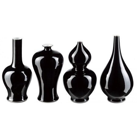 Currey and Company Imperial Black 10 1/2" H Porcelain Decorative Vases Set of 4