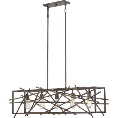 - Rustic five-light island pendant light from the Brigham collection by Quoizel.