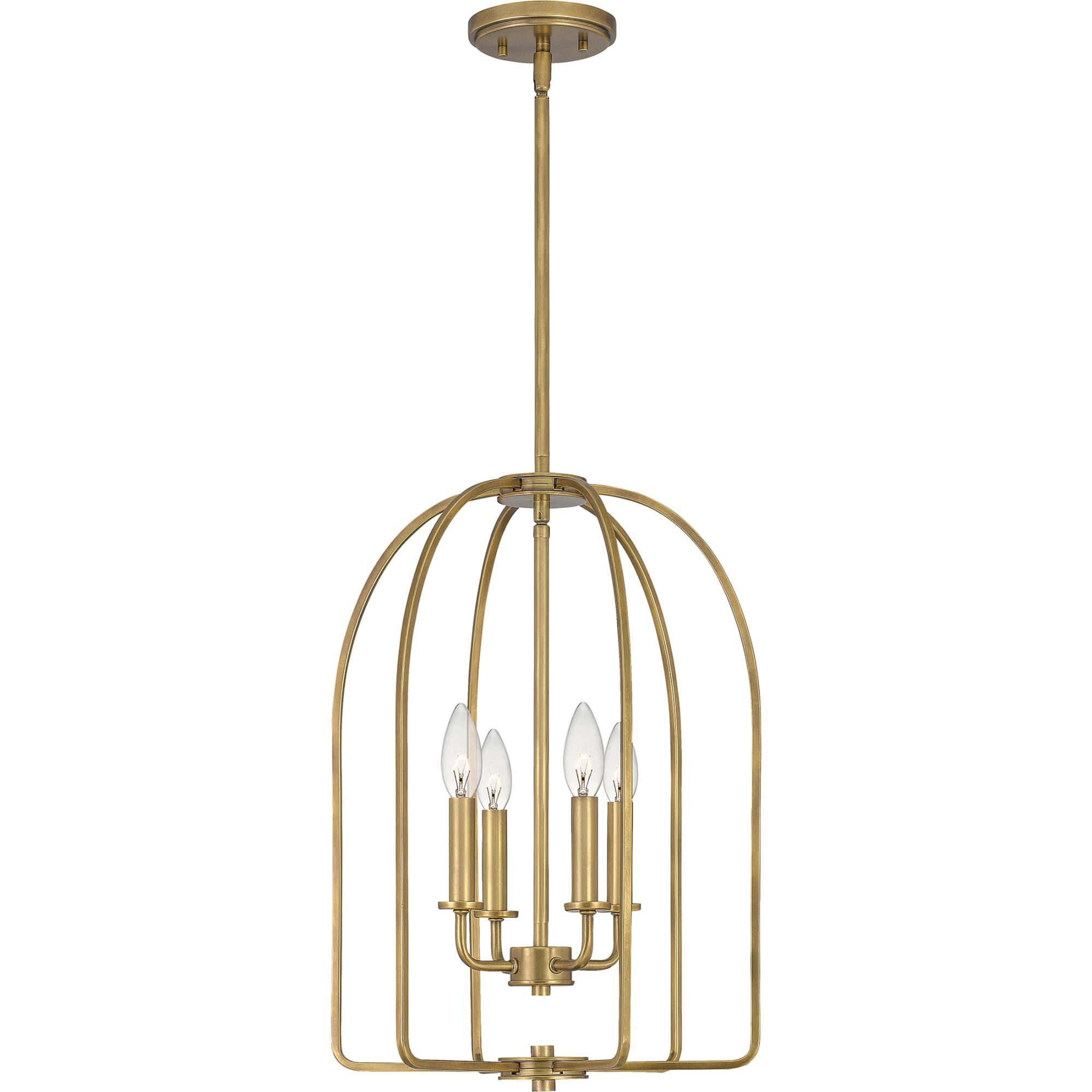 - Open cage four-light pendant light from the Cornell collection by Quoizel.