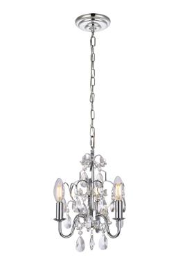 The Kaede collection features a glorious pendant light that shimmers with strands of almond-shaped and octagon royal-cut clear Crystals. A Chrome column connects to graceful curved hooks supporting an avalanche of descending Crystals. Undulating arms display shining Chrome candle covers holding three lights (Not included). Select this jewel of a fixture to brighten your dining room, living room, foyer, breakfast bar, or bedroom. Adjust the height as needed.A Chrome column connects to graceful curved hooks supporting an avalanche of descending Crystals. 3-light can accommodate either incandescent or LED lamp (Not included). Includes a five foot chain.