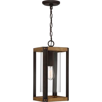 Marion Square Rustic Black & Painted Aged Walnut Wood Outdoor Hanging Light by Quoizel Lighting | MSQ1909RK | Destination Lighting