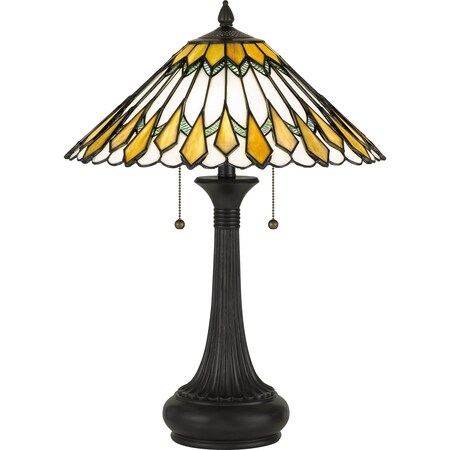 Quoizel TF5211TVB Maddow Tiffany Yellow Tie Table Lamp, 2-Light 150 Watts, Vintage Bronze
