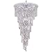 - Strands of clear royal-cut crystals fall from the top ring with trailing strands winding gently down the chrome frame