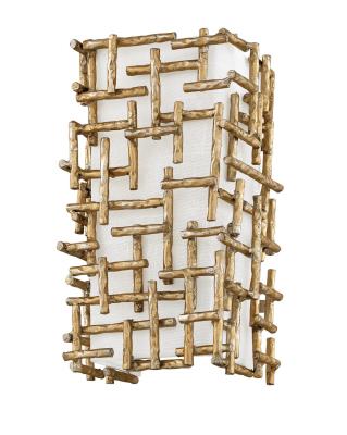 Fredrick Ramond Farrah Collection Two Light Wall Sconce, Burnished Gold w/White Linen Shade