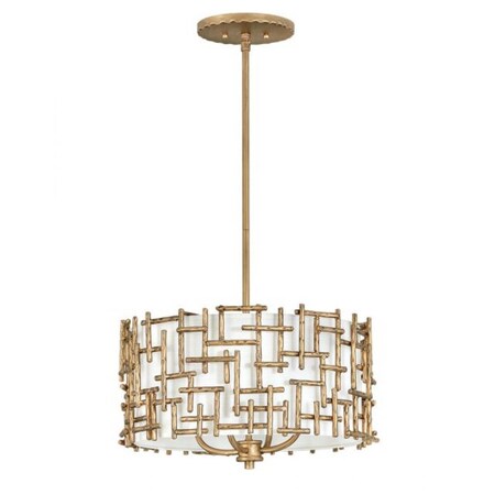 Fredrick Ramond Farrah Collection Four Light Small Drum Chandelier, Burnished Gold w/White Linen Shade