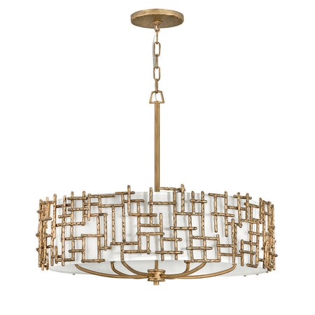 Fredrick Ramond Farrah Collection Six Light Medium Drum Chandelier, Burnished Gold w/White Linen Shade