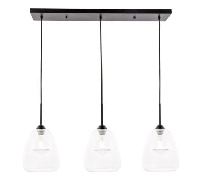 Elegant Lighting Pendant Lamp Kason 3-Light Black Clear Silver Glass Iron New E26 Satco