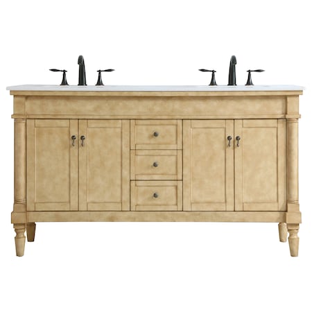 Elegant Decor 60 inch Double Bathroom Vanity in Antique Beige