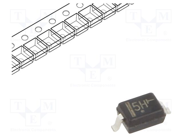 | Feature | <b>Price For:</b> Pack of 5<b>Order Unit:</b> Tape & Reel Full\xa01 <b>Diode Case Style:</b>: SOD-323 <b>Diode Configuration:</b>: Single <b>Forward Current If(AV):</b>: 10 <b>Forward Surge Current Ifsm Max:</b>: - <b>Forward Voltage VF Max:</b>: 1 <b>MSL:</b>: MSL 1 - Unlimited <b>No. of Pins:</b>: 2 <b>Operating Temperature Max:</b>: 150 <b>Operating Temperature Min:</b>: -55 <b>Packaging:</b>: Cut Tape <b>Repetitive Reverse Voltage Vrrm Max:</b>: 70 |