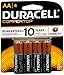 DURACELL MN1500B4Z Non-rechargeable Battery, Alkaline, 1.5 V, AA, Raised Positive and Flat Negative (10 pieces)