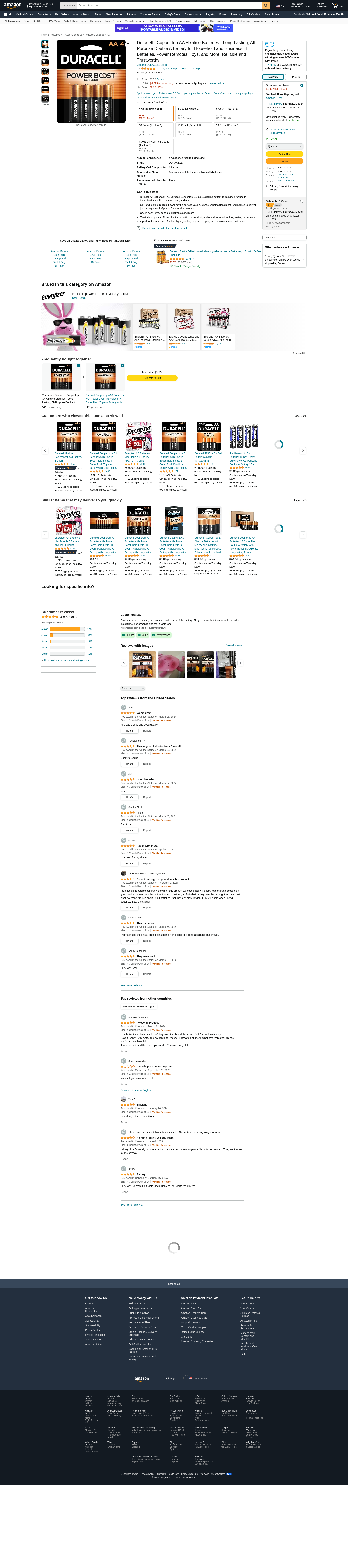 - Duracell Co USA MN1500B4Z Battery Alkaline AA 4/Pk