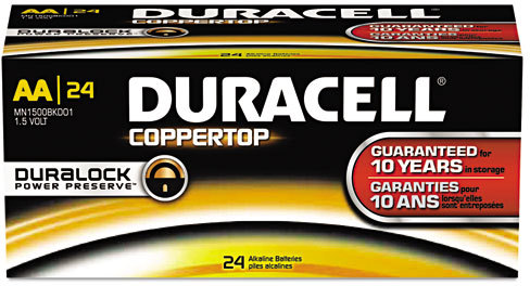 DURACELL COPPERTOP ALKALINE BATTERY WITH DURALOCK POWER PRESERVE TECHNOLOGY Battery, Alkaline, Size AA, 24/pk, 6 pk/cs (UPC# 51548)