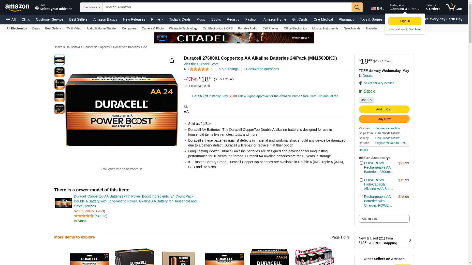 Duracell 2768001 Coppertop AA Alkaline Batteries 24/Pack (MN1500BKD)