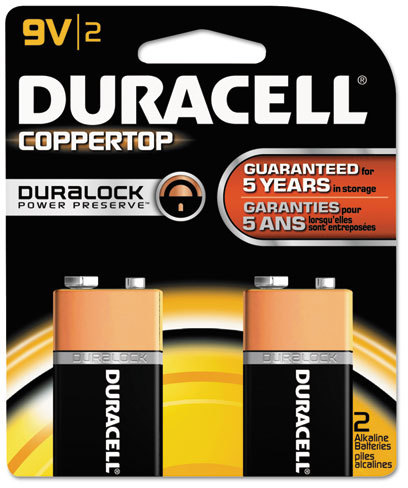 Duracell CopperTop Alkaline Batteries with Duralock Power Preserve Technology, 9V, 2/Pack