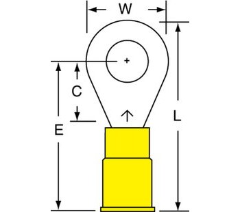 Ring Terminal, Yellow, Brazed, 12-10, PK500