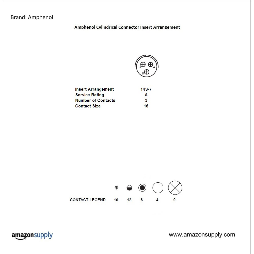 Amphenol Industrial MS3102A14S-7S Circular Connector Socket, General Duty, Non-Environmental, Threaded Coupling, Solder Termination, Box Mounting Receptacle, 14S-7 Insert Arrangement, 14S Shell Size, 3 Contacts