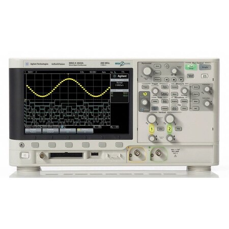 The Keysight MSOX2002A is a 70 MHz mixed signal oscilloscope. Expand your measurement capabilities with full upgradability: Add 20 MHz function generator, 3-digit voltmeter, serial trigger and analysis, segmented memory and mask testing at any time