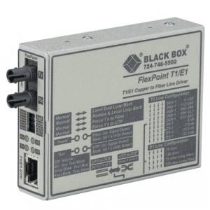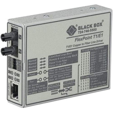 Black Box FlexPoint T1/E1 to Fiber Line Driver, Single-Mode, 28 km, ST - 1 x Network (RJ-45) - 1 x ST Ports - DuplexST Port - Single-mode - Desktop - TAA Compliant