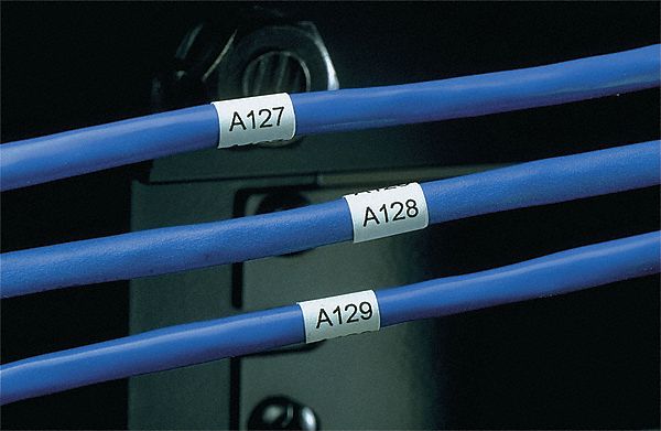 | Feature | White thermal transfer material for printing 1 x 0.75" adhesive labels for marking wire or cable |