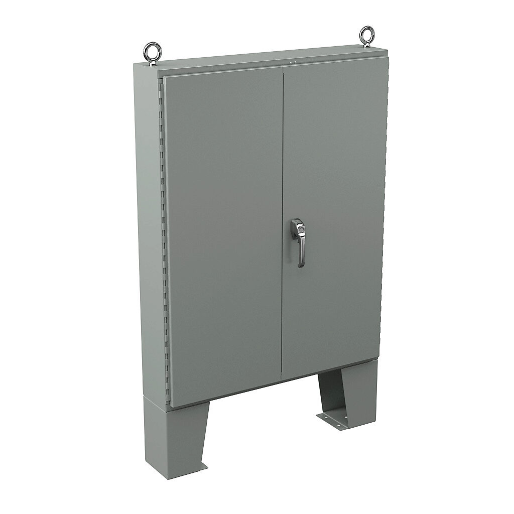 N12544208 - Wiegmann enclosure, NEMA 12, 54 x 42 x 8in (HxWxD), floor mount, carbon steel, ANSI 61 gray, powder coat finish, double-door, 3-point...