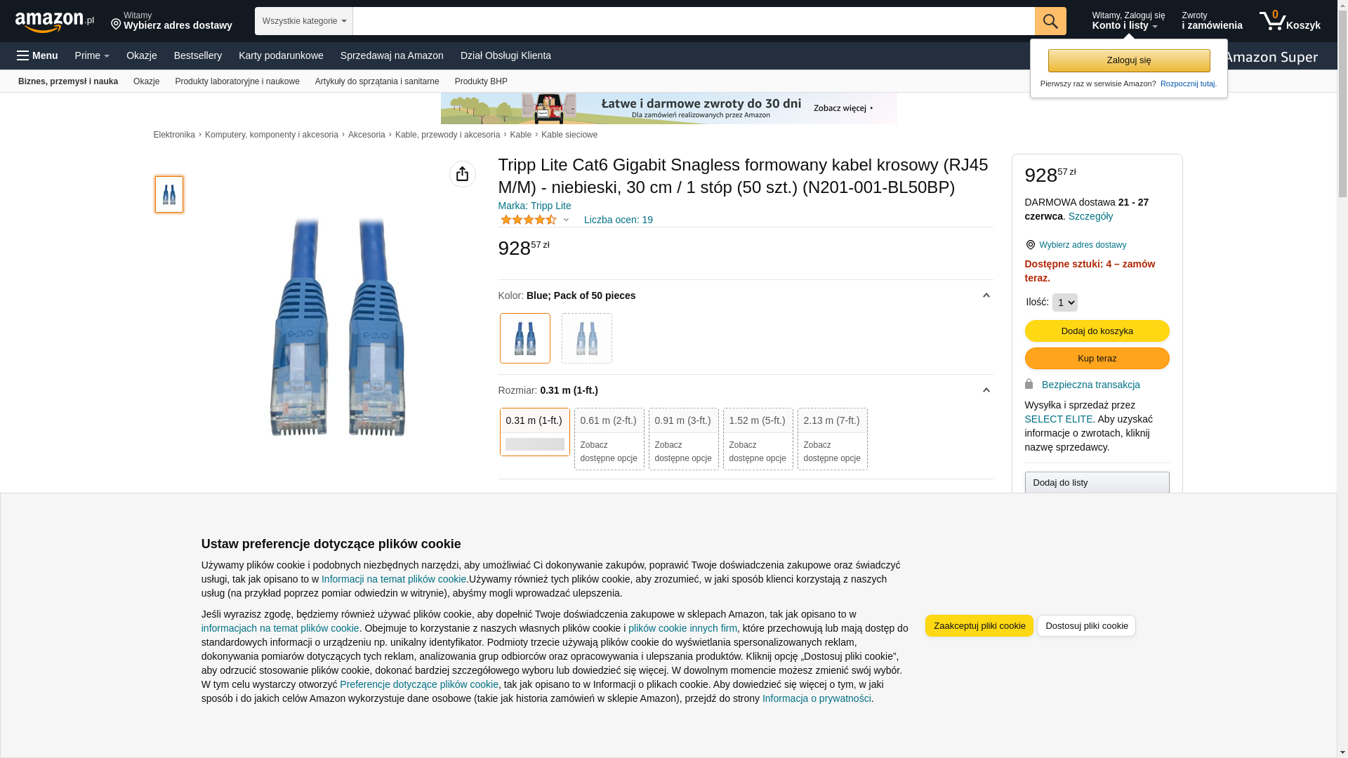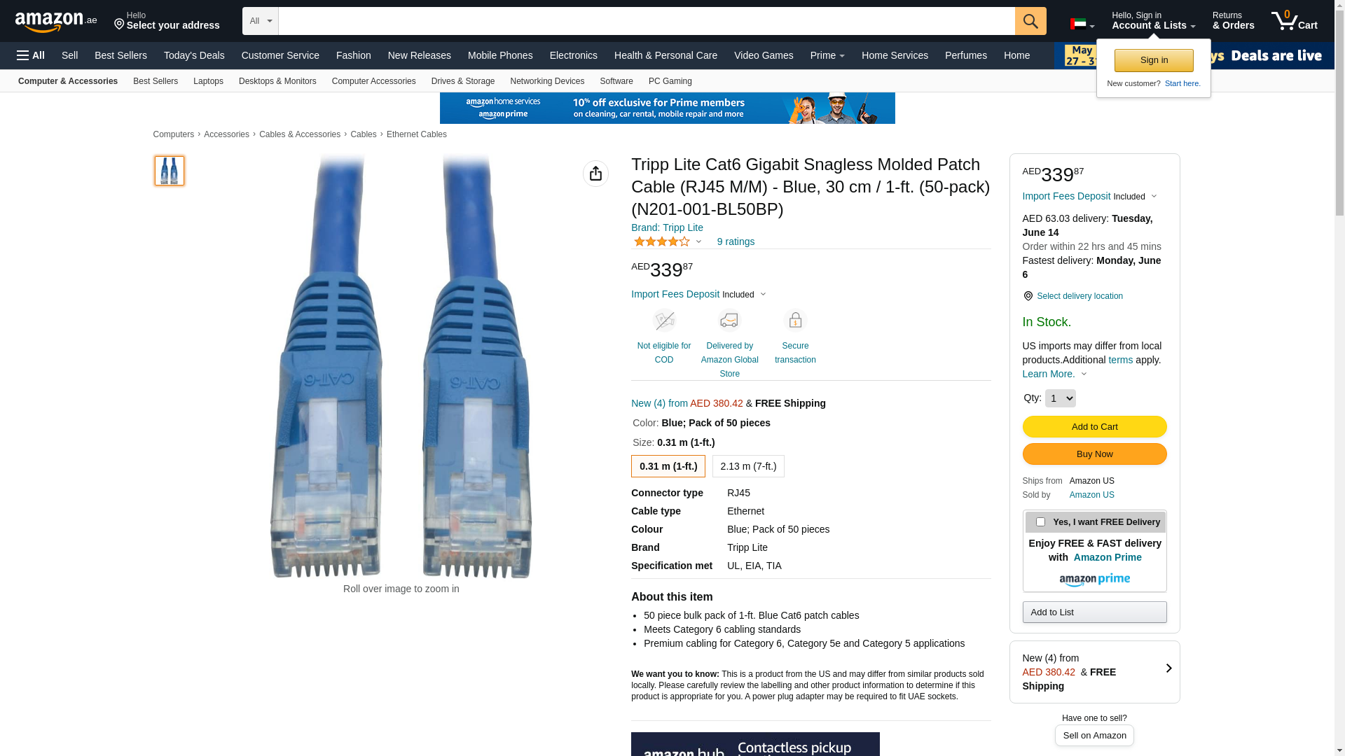 | Feature | 50 piece bulk pack of 1-Feet. Blue Cat6 patch cables |