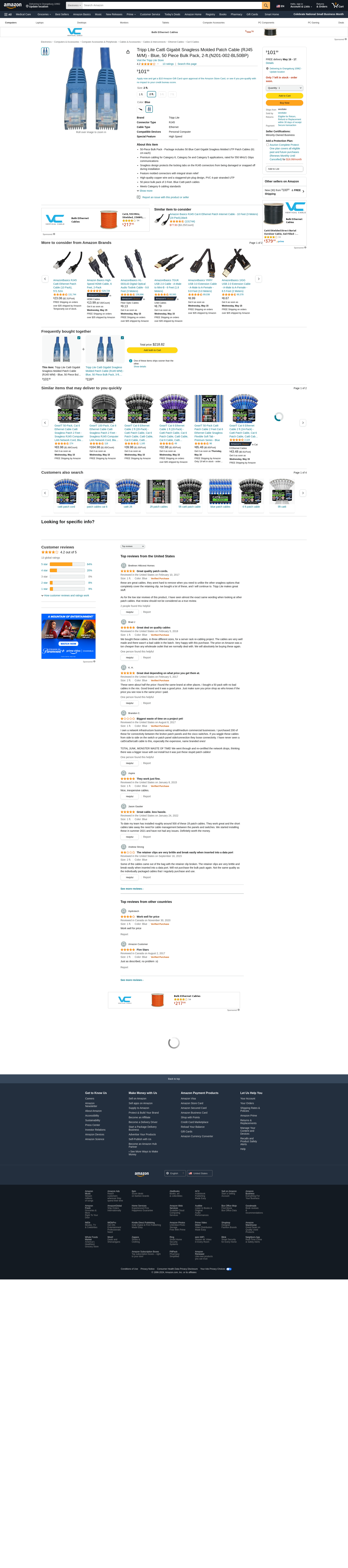 - 50 piece bulk pack of 2-Feet. Blue Cat6 patch cables