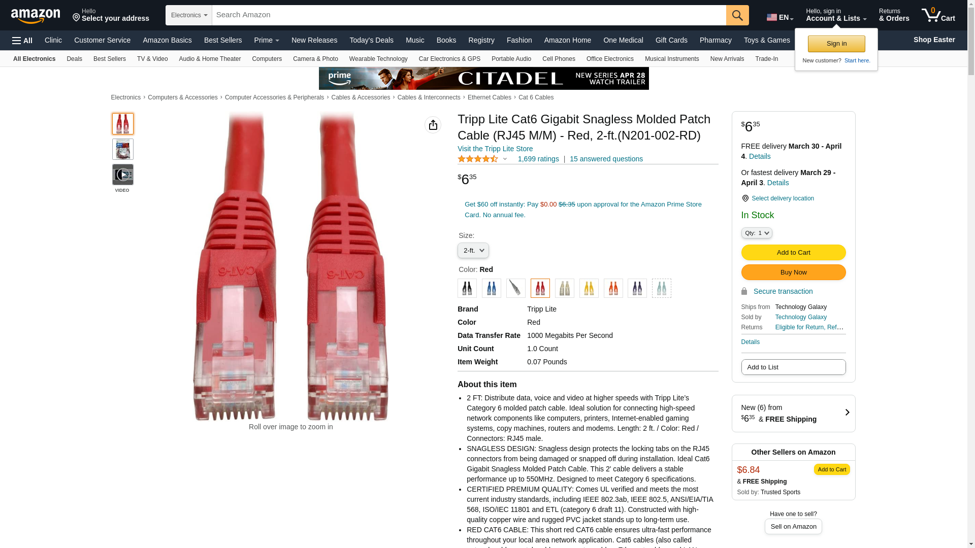 The Great Tripp Lite, Patch Cable, Gigabit, Snagless Molded, Cat6, RJ45 M/M, 2FT, Red - N201-002-RD