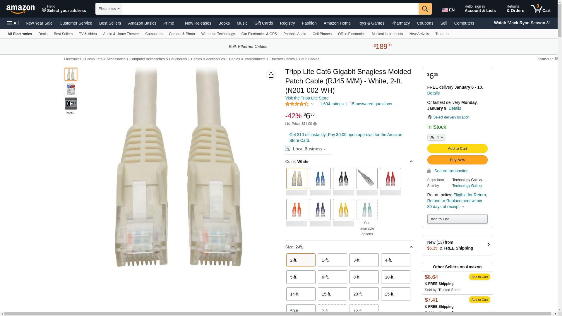 | Feature | "2 FT: Distribute data, voice and video at higher speeds with Tripp Lite's Category 6 molded patch cable. Ideal solution for connecting high-speed network components like computers, printers, Internet-enabled gaming systems, copy machines, routers and modems. Length: 2 ft. / Color: White / Connectors: RJ45 male." |