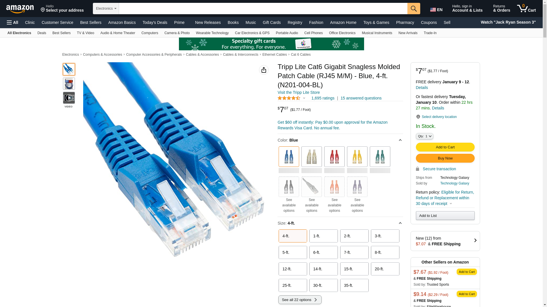 | Feature | "4 FT: Distribute data, voice and video at higher speeds with Tripp Lite's Category 6 molded patch cable. Ideal solution for connecting high-speed network components like computers, printers, Internet-enabled gaming systems, copy machines, routers and modems. Length: 4 ft. / Color: Blue / Connectors: RJ45 male." |
