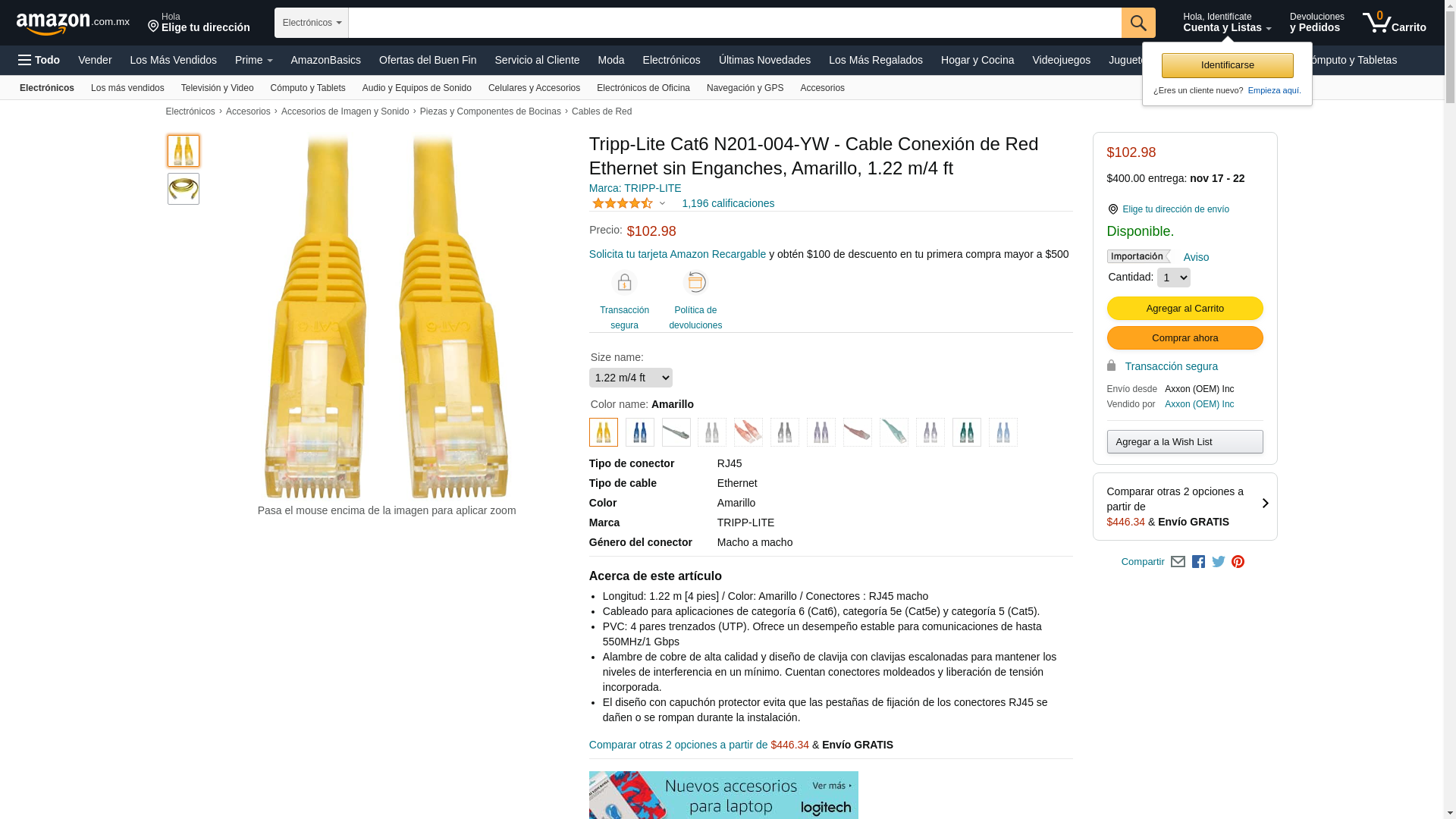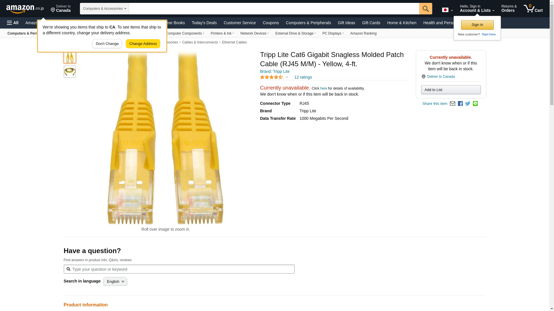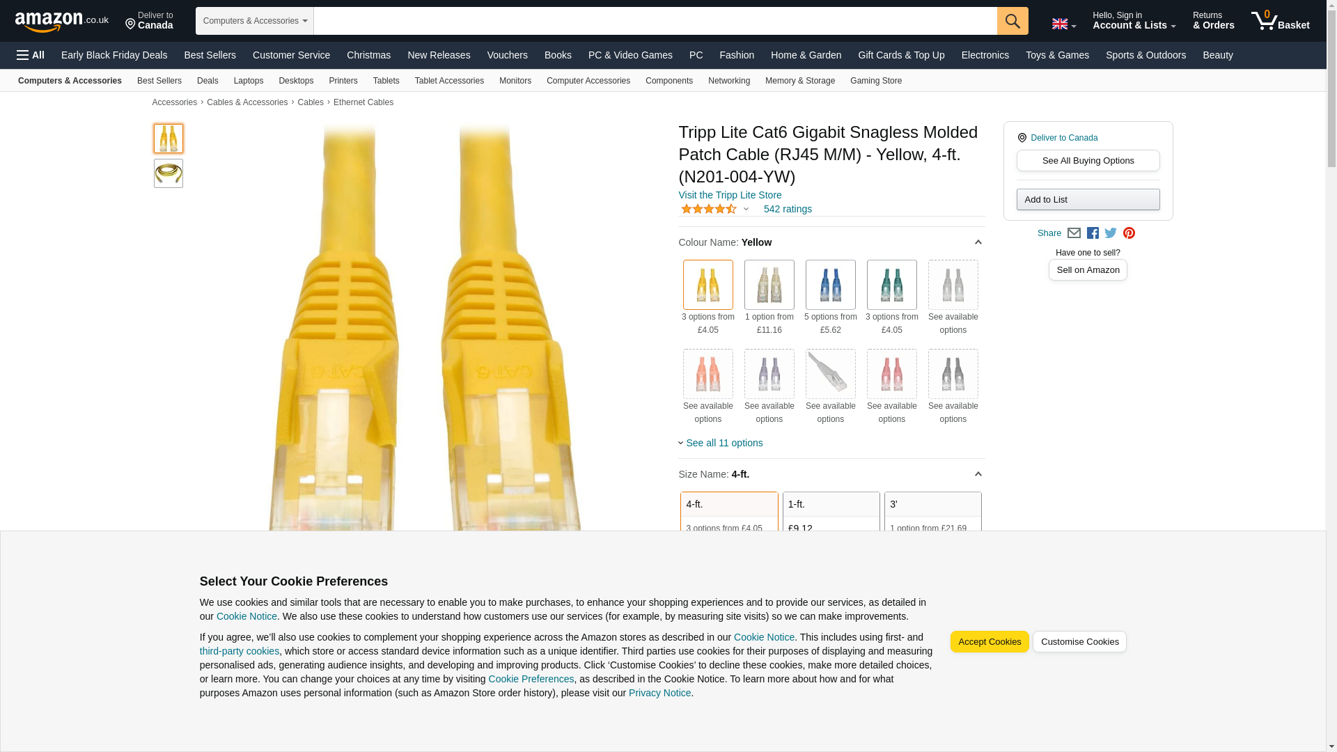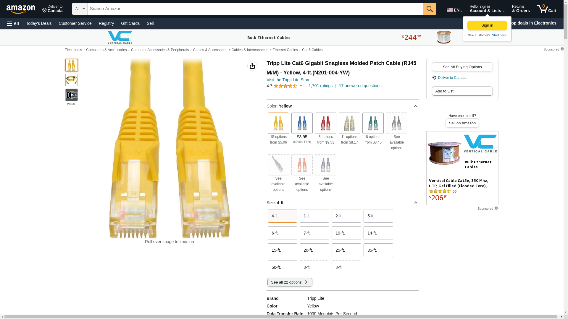 - Length: 4 ft./Color: Yellow/Connectors: RJ45 male