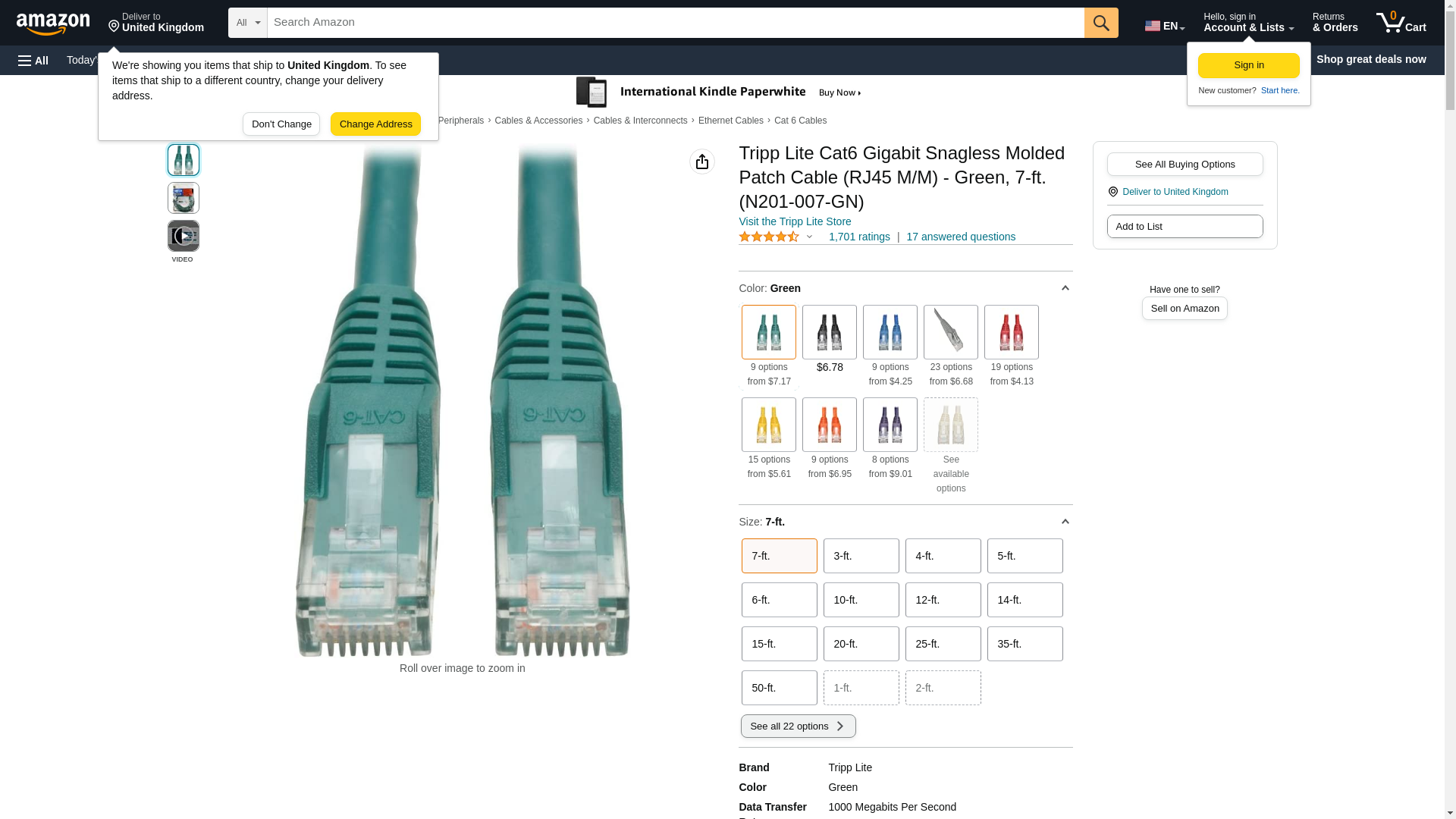 | Feature | "7 FT: Distribute data, voice and video at higher speeds with Tripp Lite's Category 6 molded patch cable. Ideal solution for connecting high-speed network components like computers, printers, Internet-enabled gaming systems, copy machines, routers and modems. Length: 7 ft. / Color: Green / Connectors: RJ45 male." |