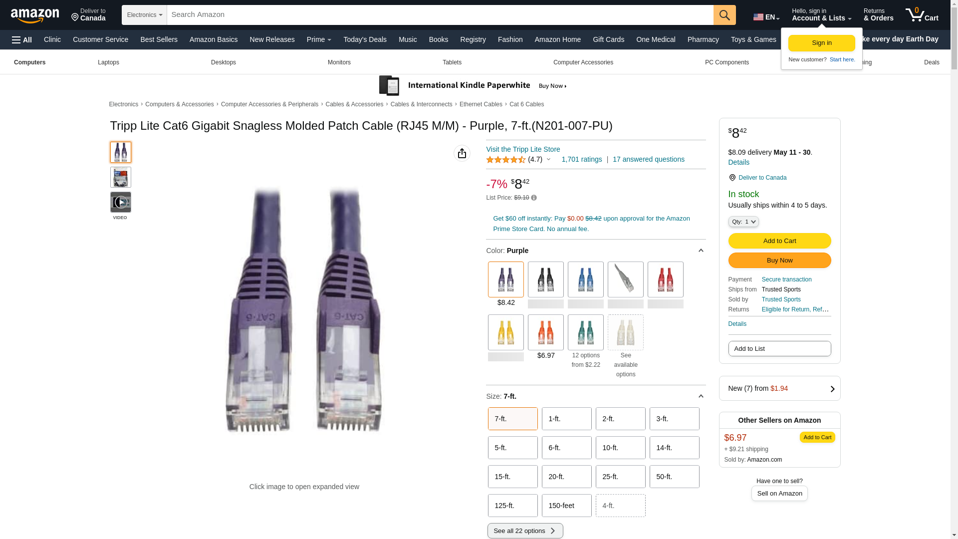 | Feature | "7 FT: Distribute data, voice and video at higher speeds with Tripp Lite's Category 6 molded patch cable. Ideal solution for connecting high-speed network components like computers, printers, Internet-enabled gaming systems, copy machines, routers and modems. Length: 7 ft. / Color: Purple / Connectors: RJ45 male." |