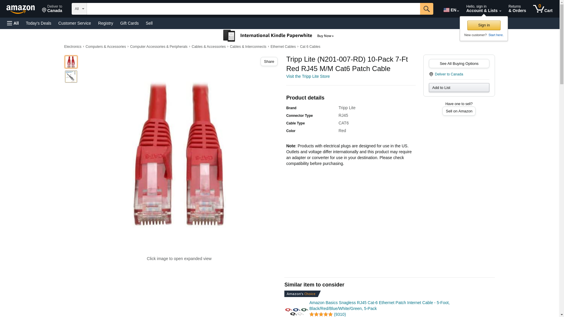 Tripp Lite (N201-007-RD) 10-Pack 7-Ft Red RJ45 M/M Cat6 Patch Cable
