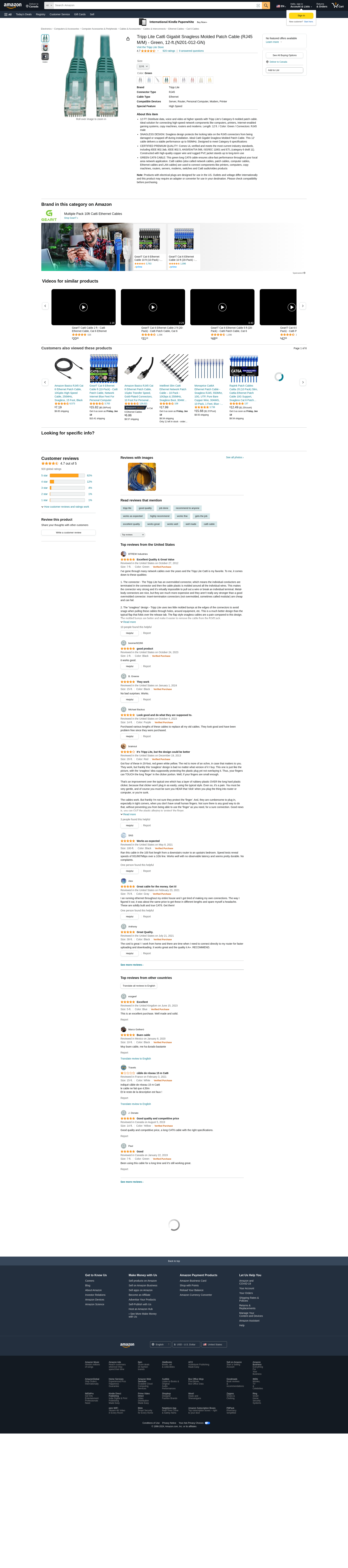 - 12 FT: Distribute data, voice and video at higher speeds with Tripp Lite’s Category 6 molded patch cable. Ideal solution for connecting high-speed network components like computers, printers, Internet-enabled gaming systems, copy machines, routers and modems. Length: 12 ft. / Color: Green / Connectors: RJ45 male