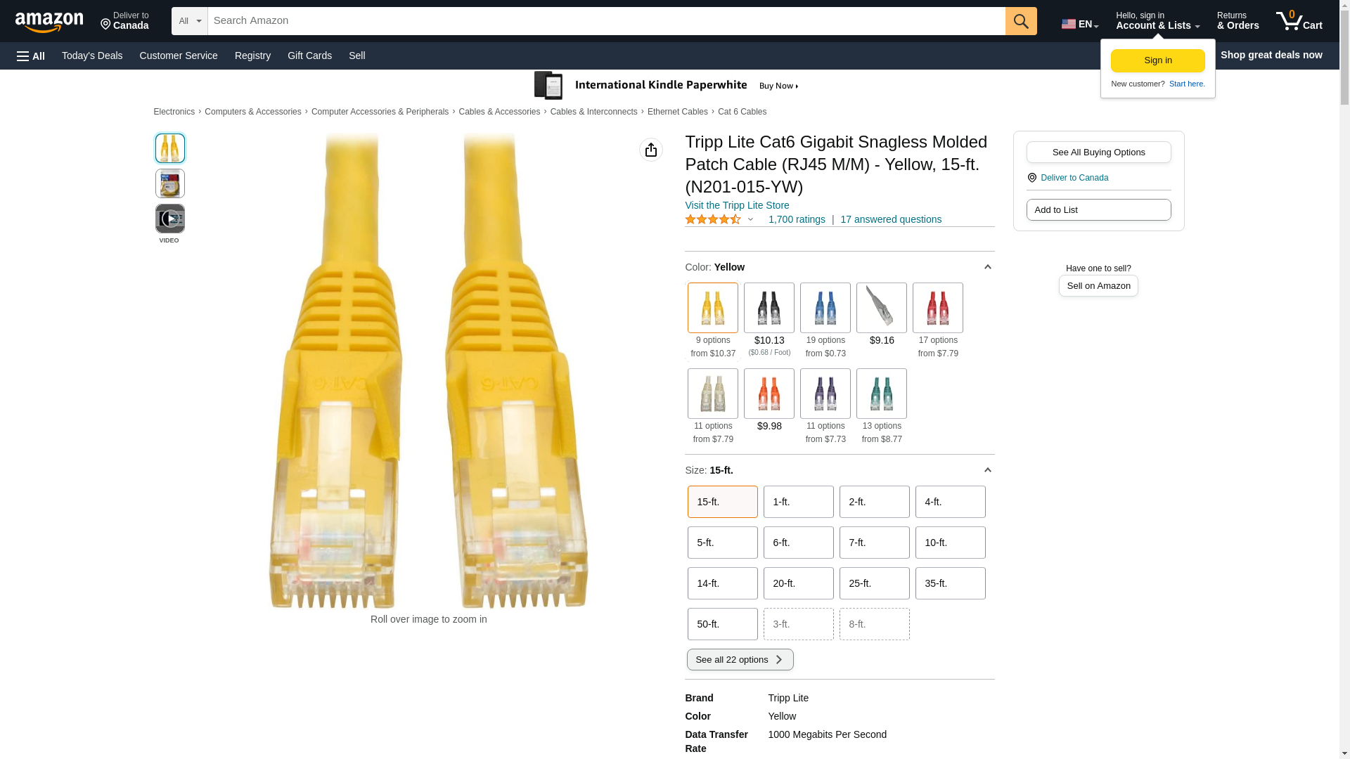 | Feature | Network Cable Type: Patch Cable| Cable Technology: Unshielded Twisted Pair (UTP)| Left Connector Gender: Male| Right Connector Gender: Male| Left Connector Type: RJ-45| Right Connector Type: RJ-45| Length: 15 feet| Enclosure Color: Yellow |