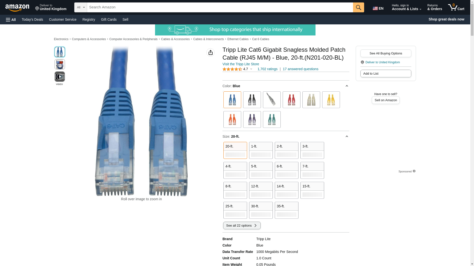 - 20 FT: Distribute data, voice and video at higher speeds with Tripp Lite’s Category 6 molded patch cable. Ideal solution for connecting high-speed network components like computers, printers, Internet-enabled gaming systems, copy machines, routers and modems. Length: 20 ft. / Color: Blue / Connectors: RJ45 male.
